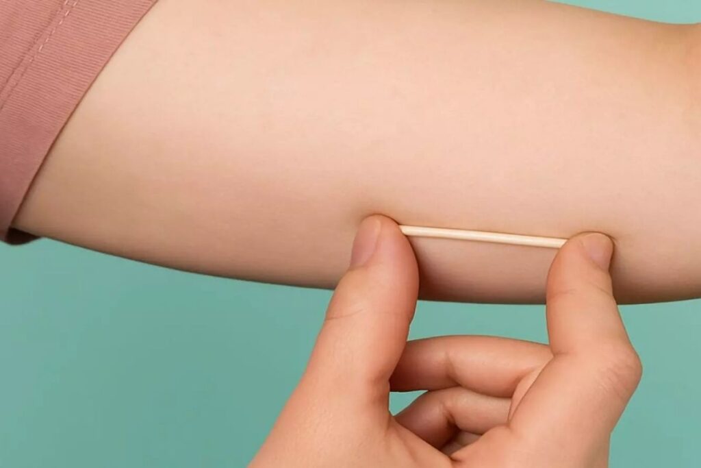 O Implanon é um pequeno bastão flexível, do tamanho de um fósforo, inserido sob a pele do braço e que libera lentamente o hormônio etonogestrel. Sua função? Impedir a ovulação e, com isso, prevenir a gravidez com altíssima eficácia. O efeito dura até três anos.